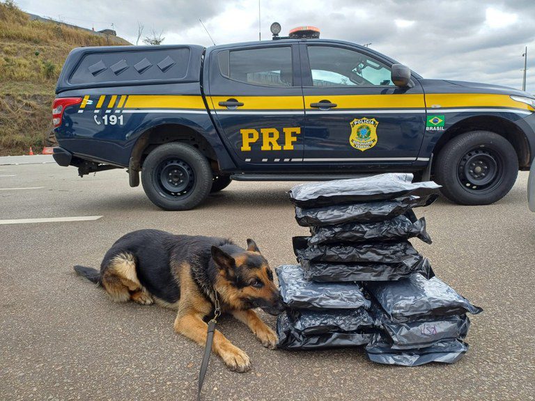 Com ajuda de cão farejador, PRF apreende cerca de 11 quilos de skunk na BR-381, em Betim