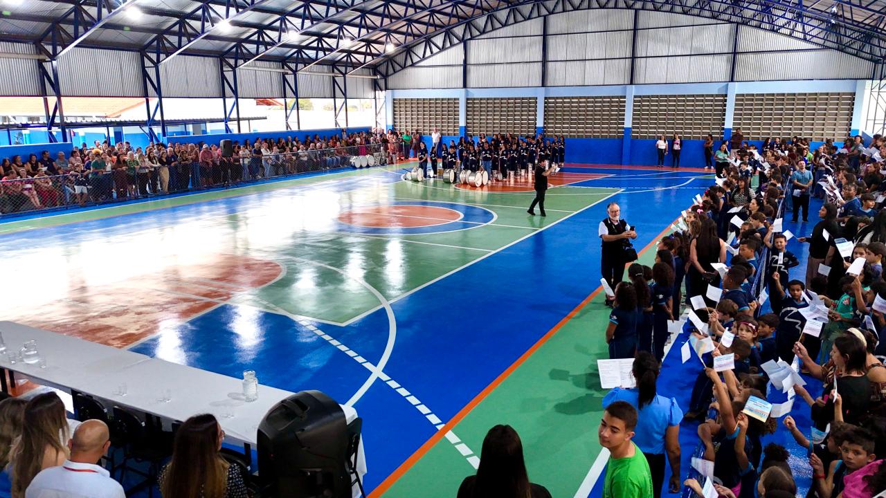 Com ar-condicionado e quadra coberta, São Joaquim de Bicas inaugura última etapa da primeira escola do programa Mãos Dadas