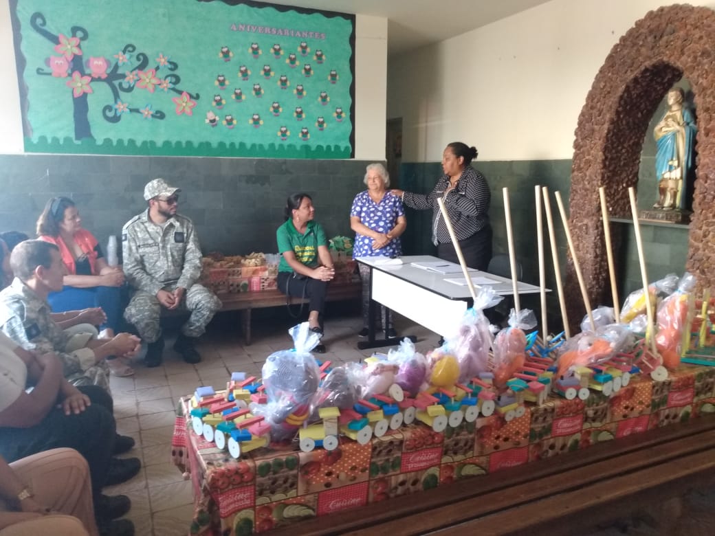 Cerca de 150 brinquedos produzidos em madeira e linha de crochê, todos feitos por presos do Presídio de São Joaquim de Bicas II, foram entregues nesta terça-feira (17) para crianças da Creche São Tarcísio, localizada no bairro Tereza Cristina, em São Joaquim de Bicas.
