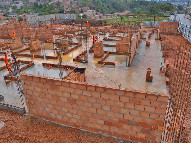 UBS Vila Recreio: Obras já avançaram 13,15% do projeto. Serviços em execução: alvenaria, vergas e contravergas; concretagem de pilares; caixas de passagem e rede de água pluvial.